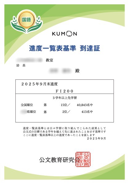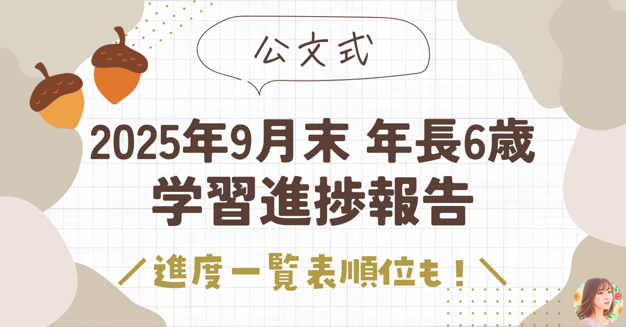 【全国順位有】公文式学習進捗 2025年9月末 ‖年長6歳5ヶ月 ‖学習歴3年4ヶ月